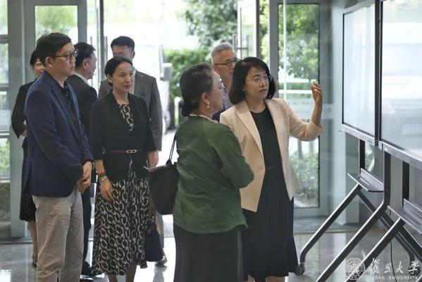 在发展研究院,吉尔一行和阿里沙赫巴纳一行考察了全球人工智能创新治理中心建设情况,与中心专家座谈,参观复旦大学人工智能发展与治理成果展示。