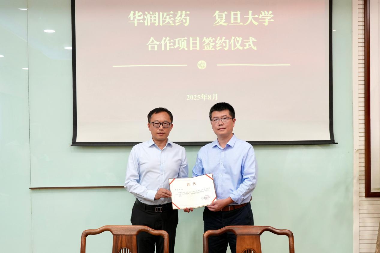 仪式上,陈波受聘为复旦大学药学院生物与医药专业学位行业导师,李聪受聘为华润医药科学技术委员会特聘专家。