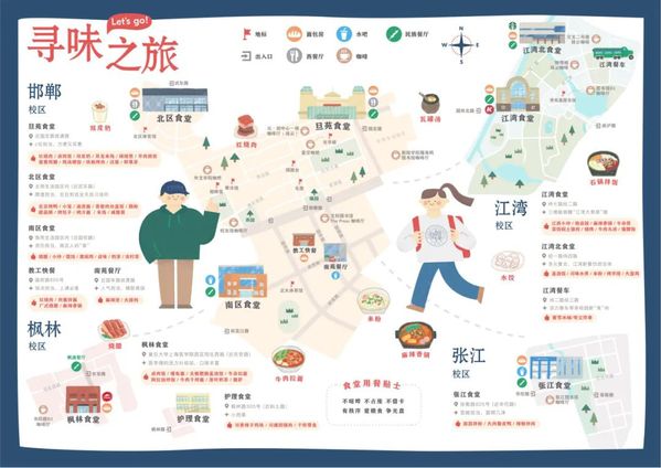食堂就餐方面,校内有多个餐厅,本部校区主要包括旦苑餐厅、南区食堂、教工餐厅、北区食堂等。点击图片可跳转“最全食堂指南”~