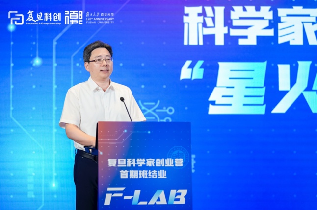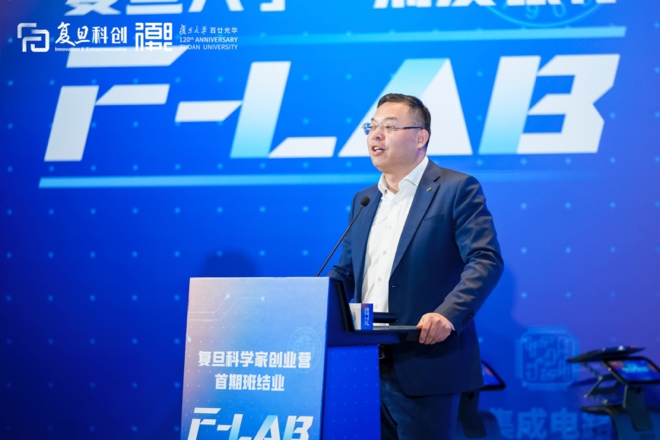 复旦大学校长、中国科学院院士金力在致辞中向全体结业学员表示祝贺,并强调F-LAB是复旦推动“四链融合”、破解科研产业化瓶颈的关键举措。金力指出,科学家如果不主动走向企业,毕生的研究成果就只会停留在论文里、实验室的抽屉里,无法真正转化为推动社会进步的力量。“创业营搭建了一个有意义的平台,让科学家带来前沿技术,让企业带来场景和资源,让资本带来助力和视野,让政策带来保障和引导,最终让‘政产学研金服用’,真正能够融为一体。”