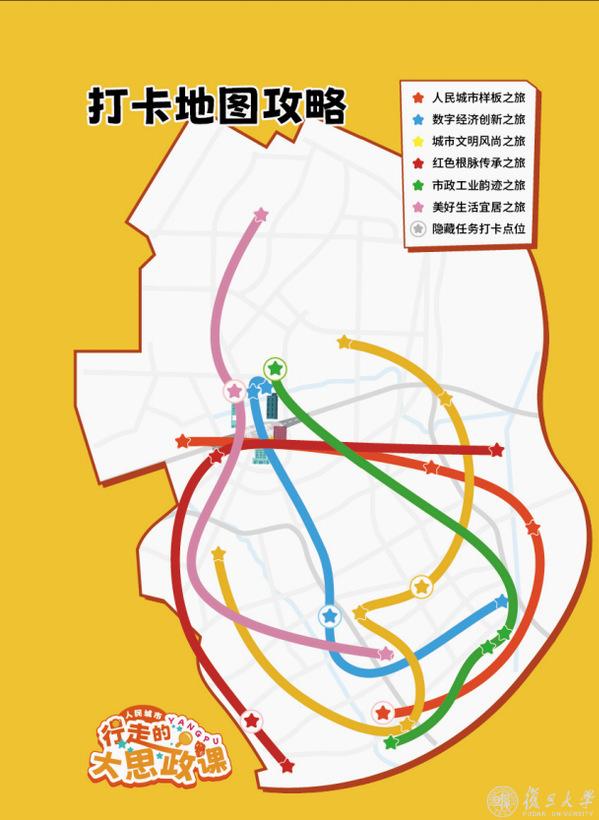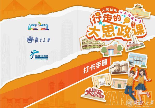 一本可以塞进书包的橙色小册子、防水页面、二次元画风手绘地图——是杨浦区与复旦大学联手为全区中小学生精心设计的“行走的大思政课”打卡手册。