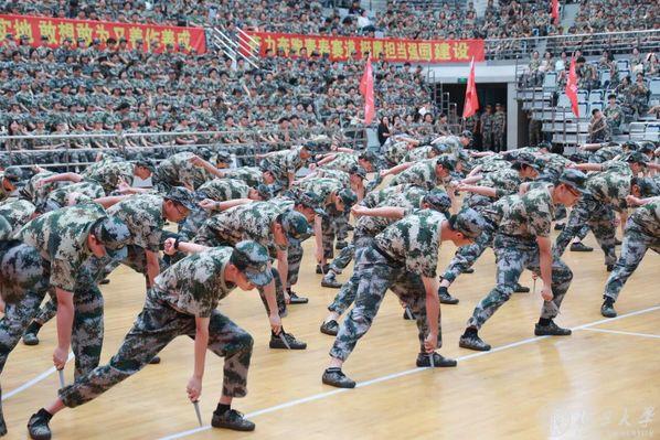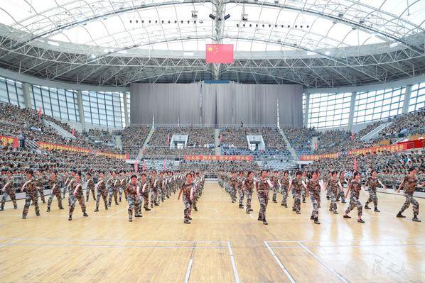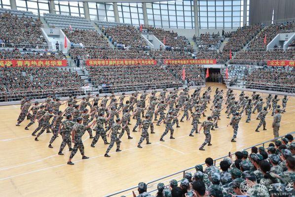 9月5日,复旦大学2025年学生军训汇报大会在正大体育馆举行。22支连队意气风发,斗志昂扬,接受军训检阅。