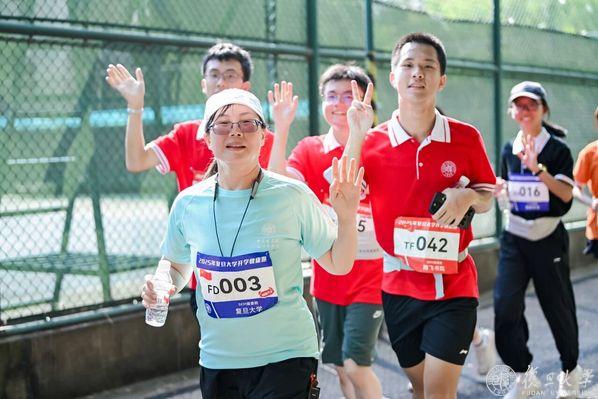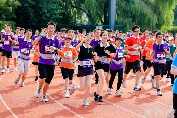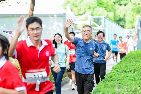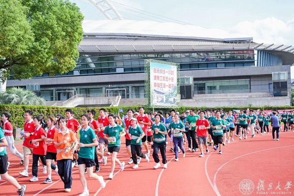 发令枪清脆响起,师生们迈开矫健的步伐,跑道上的身影向前涌动,展现出复旦人的蓬勃朝气。