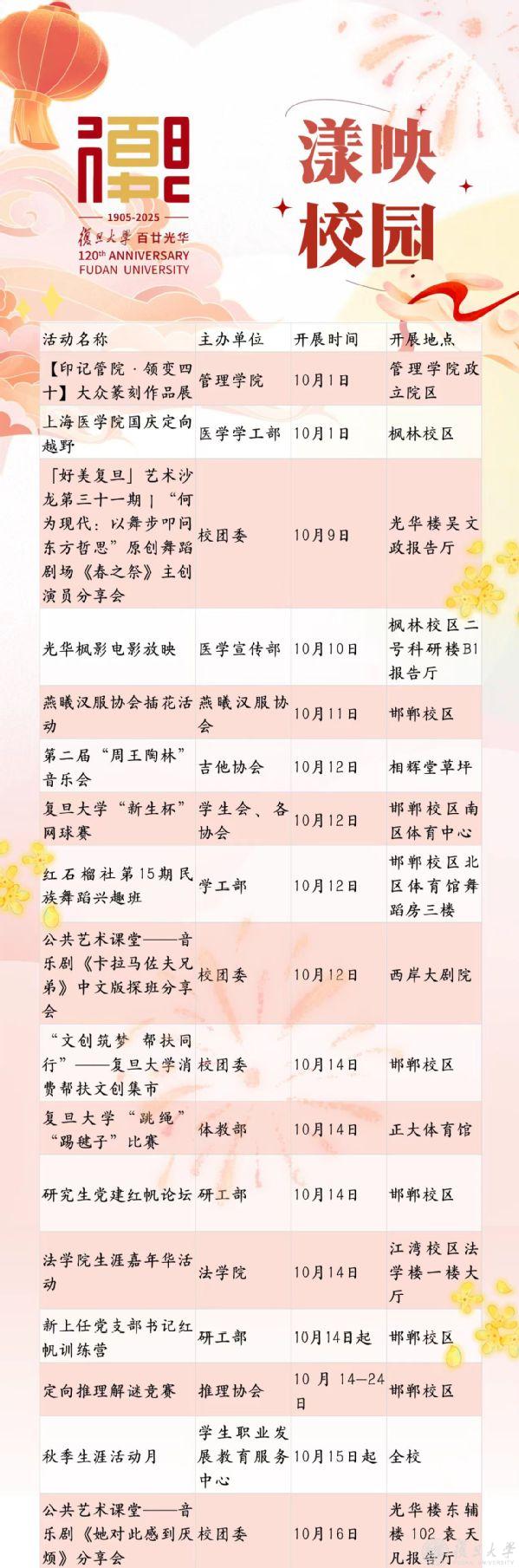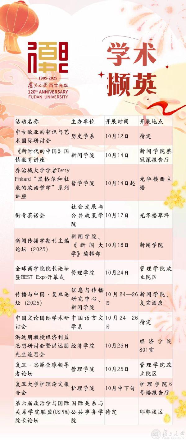 月满华诞,礼献金秋。十月的校园已把惊喜悄悄藏。学术的星光、文化的烟火,正顺着秋光铺成旅程。让我们翻开文化校历,走进这丰盈的秋日,共赴一场文化盛宴。