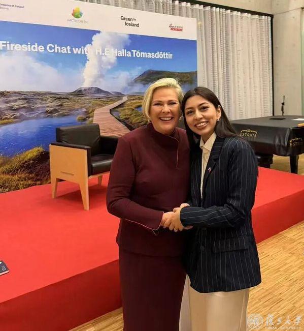 “听到总统用‘stronger together’形容冰岛与中国的关系,我感到非常激动!”天一回忆那天的场景:托马斯多蒂尔总统耐心聆听她讲述在复旦多年的求学经历与见闻,并分享此次访华的重点正是推动两国在女性赋权与能源领域的合作。“过去几十年间,两国在人员往来、经贸交往及科技合作领域都取得显著进展,我希望能运用在复旦所学的国际关系专业知识,成为连接冰岛与中国、冰岛与复旦的桥梁。”天一操着一口流利的中文说道。