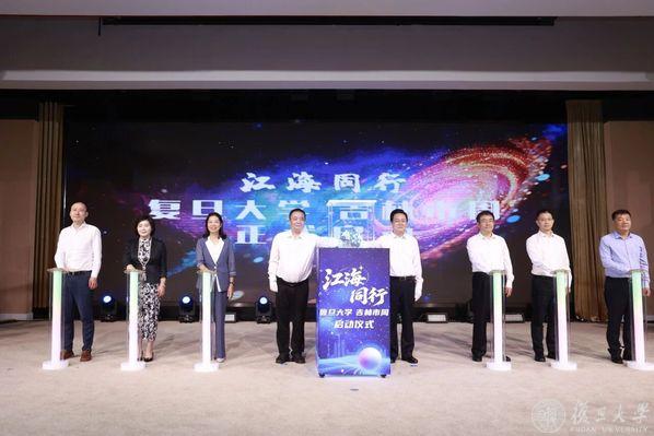 10月19日上午,复旦大学校长、中国科学院院士金力,复旦大学党委常委、常务副校长许征,复旦大学党委副书记钱海红,复旦大学党委常委、组织部部长艾竹;中共吉林市委书记胡斌,中共吉林市委常委、组织部部长冀广起,中共吉林市委常委、副市长陈洪治,吉林市委秘书长、市委办公室主任明继国在复旦大学吴文政报告厅共同启动“复旦大学·吉林周”。上海市委副秘书长、上海市政府参事燕爽,复旦大学相关部门(院系)负责人、专家教授,吉林市委市政府相关部门负责同志等出席活动。