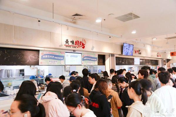 邯郸校区北区食堂二楼的内蒙古大学专窗,受到了师生最热烈的欢迎。排过长队,每样美食都“闭眼入”。