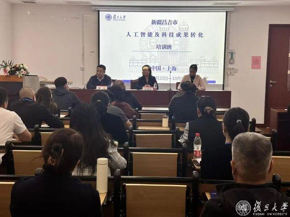 同样在上海,就在算力调度平台启动仪式举办的前一天,新疆昌吉市人工智能及科技成果转化培训班在复旦大学开班。昌吉市科技条线35名干部,将在复旦开展为期十天的人工智能和科技成果转化培训。课程将覆盖领导力提升、管理科学、科技成果转化与知识产权保护、大数据与城市管理、智能体零基础构建等等内容。