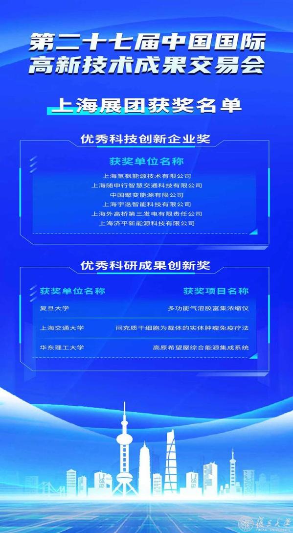 11月14日至16日,第二十七届中国国际高新技术成果交易会(以下简称“高交会”)在深圳举办。复旦大学十六项优秀成果参展,面向智能环保、生物医药、先进制造、新能源与电子信息等多个关键科技领域,组织一批代表性成果参展。其中,十五项报奖成果均获得优秀创新成果展品奖,获奖数量名列前茅。