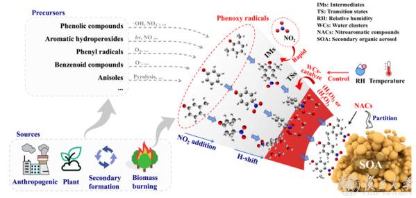 3.提出气溶胶“水簇催化”新机制:大气湿度有助于形成“棕色污染”