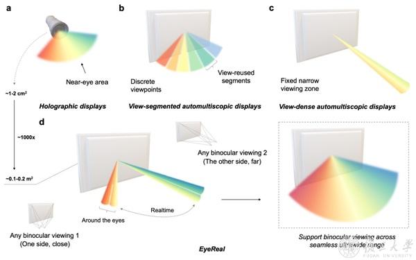 “如果以建造泳池为例,三维显示的信息预算就相当于泳池的水量,想实现人在任何位置都能肆意游动,那么这个泳池要又长(尺寸大)又宽(视角广)。”但是,现有物理条件下可用的“水量”有限,因此,如何分配预算成为问题的关键。