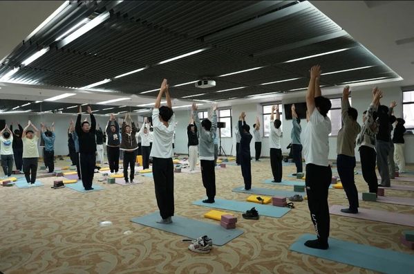 “注意感受呼吸的节奏,让气息深入到腹部。”轻敲引磬,清脆的声音在瑜伽教室里回荡。二十余名学生平躺在垫子上,闭目调息,仿佛与外界的喧嚣隔绝。