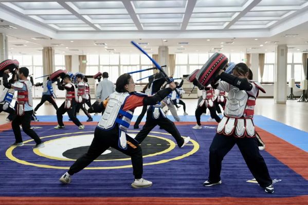 几声清脆的兵器交击声响起,两名学生身着护甲,手持短兵,正在一场攻防中你来我往。这不是古装剧拍摄,而是自2024年起新开设的《武术兵道》课程。