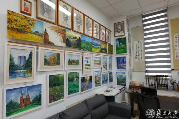 会客厅左侧是办公室兼书房,他的十余本学术专著与中外学术研究书籍大多放置于此,书架顶端是中国航天航空的多种任务模型;会客厅右侧则是一间特别的画室,墙上挂满了他近年的绘画作品,中西绘画风格皆有。