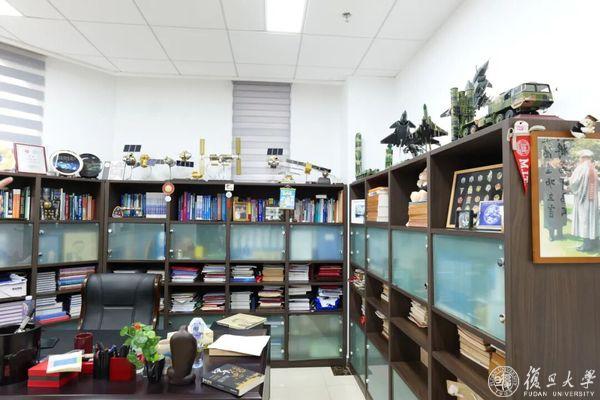 复旦大学江湾校区交叉二楼,金亚秋的办公室所在地,这处日常活动空间被他划分成左中右三个功能区,截然分明。