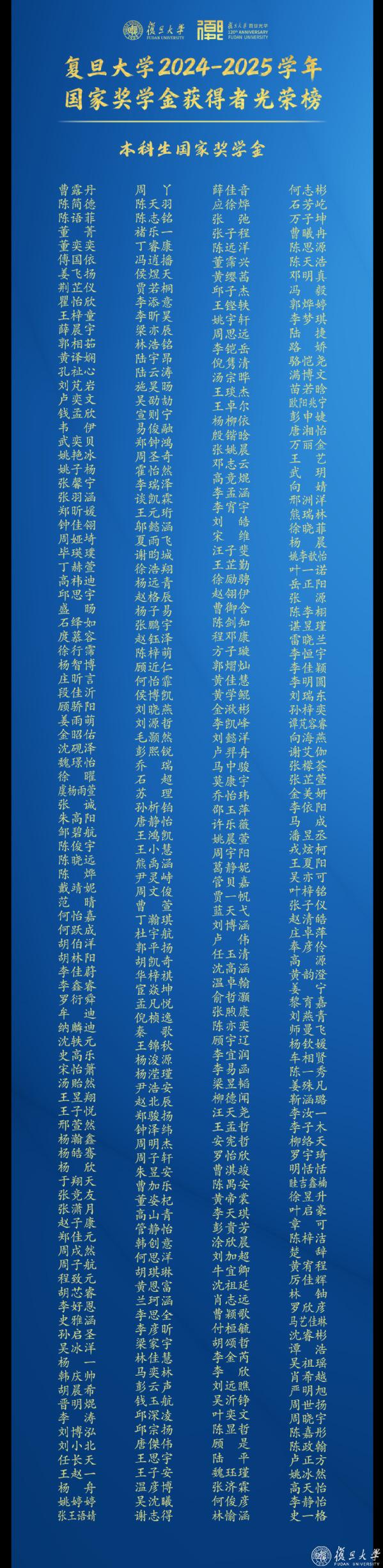 副校长、奖(助)学金评审委员会副主任周磊宣读复旦大学2024-2025学年奖学金获奖学生名单。