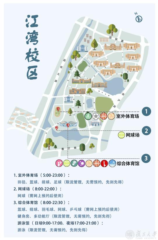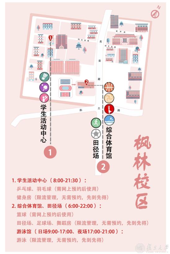 明快的线条,鲜艳的色块,为师生注入跃动的活力。体育早已融入复旦人的日常生活。