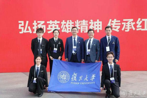 魏麒作为复旦学生代表参加烈士迎回仪式(后排左二)