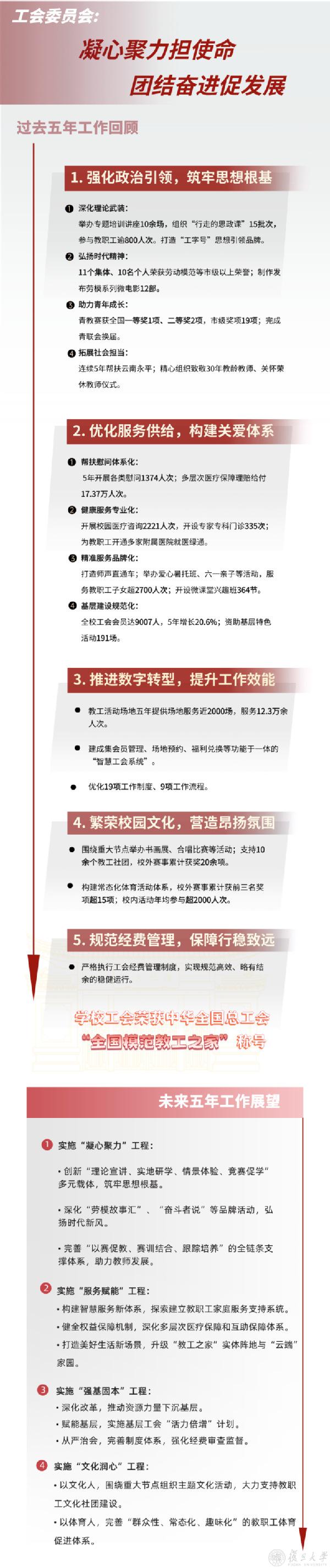 一要在服务全校大局中彰显更大担当,以总书记重要贺信精神为根本遵循,一手助推教育科技人才一体改革,一手助力“十五五”规划的规划编制,激励引导大家立足本职岗位建功立业。二要在保障教职工权益中体现更暖温度,短期推动“微改革”,长期围绕增效、减负、赋能、正风,用心用情解决教职工急难愁盼问题,多做疏导情绪、理顺人心的工作,为改革平稳推进营造良好氛围。三要在加强自身建设中激发更强活力,深化组织体系,不断扩大覆盖面,优化工作机制,切实提升工作有效性、针对性,强化队伍建设,打造与一流大学相匹配的一流工会干部队伍。