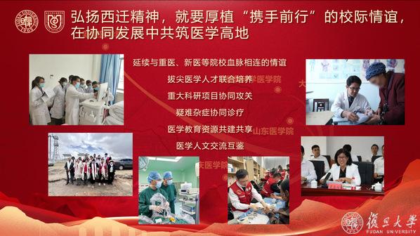 四要厚植“携手前行”情谊,以传承西迁精神为纽带,延续上医与重医、新医等兄弟院校之间血脉相连、休戚与共的深情厚谊,深化校际拔尖医学人才培养、重大科研项目攻关、疑难杂症协同诊疗、医学教育资源共建共享、医学人文交流互鉴等领域合作,助力区域协调发展。