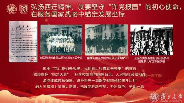 70年前,为优化高等教育战略布局,提升中西部地区医学教育和卫生健康事业发展水平,一大批上医前辈们积极响应党和国家号召,毅然告别上海奔赴祖国各地,牵头筹建重庆医学院,全力支援新疆医学院、军事医学科学院等多所院校建设,将医学火种播撒在祖国中西部广袤大地,用青春热血书写了矢志报国、薪火相传的西迁壮歌。