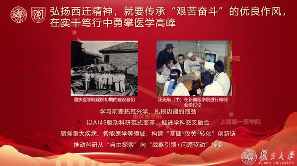 三要传承“艰苦奋斗”作风,学习老一辈西迁人在艰苦条件下拓荒兴学的精神、“啃硬骨头”的勇气和“钉钉子”的韧劲,在科研探索上实现引领性突破,以AI4S驱动科研范式变革,构建“基础研究-技术攻关-临床转化”创新链条,在实干笃行中勇攀医学高峰。