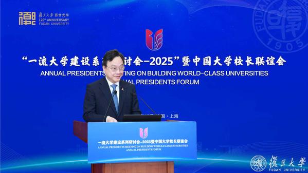 在开幕式致辞中,复旦大学党委书记裘新对各位同仁表示热烈欢迎。他指出,每年的“一流大学建设系列研讨会”与“中国大学校长联谊会”,为加快建设中国特色世界一流大学贡献了丰硕的智慧成果。在全国上下深入学习贯彻党的二十届四中全会精神之际,本次研讨会以“建设中国特色世界一流大学,服务支撑中国式现代化”为主题,正当其时、意义重大。愿以本次研讨会和联谊会为契机,进一步加强与兄弟高校的交流合作,共同破解裉节难题,推动一流大学建设成色更足、底蕴更厚,谱写服务支撑中国式现代化的新篇章。