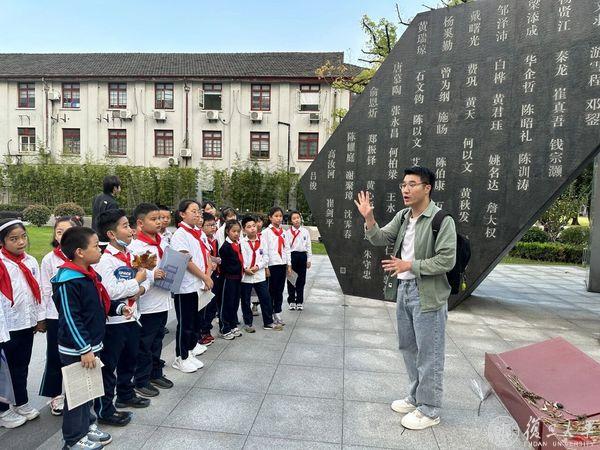 除了讲解员外,杨宁作为复旦附中校外辅导员、五角场街道和凉城街道社区党校讲师,走进上海的大街小巷,推动党的创新理论大众化传播。为了让理论宣讲深入青年人,他牵头参与打造电影党课、红色巴士研学实践等互动化创新产品,工作案例入选《党史学习教育案例选编》。
