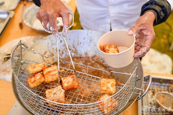 “我最喜欢这个豆腐包,皮薄个大,外皮晶莹有韧性,内里的豆腐软烂鲜嫩,在外皮裹上特制辣酱,有种‘冰火两重天’的独特口感。”2023级计算机科学与技术专业本科生王羽轩说,现场摊位种类多、互动气氛热闹,让她对绍兴美食与文化有更多了解和体验。