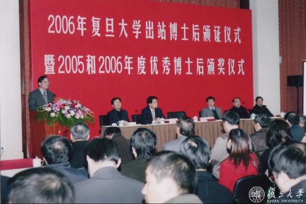 2006年,复旦大学出站博士后颁证仪式暨优秀博士后颁奖仪式