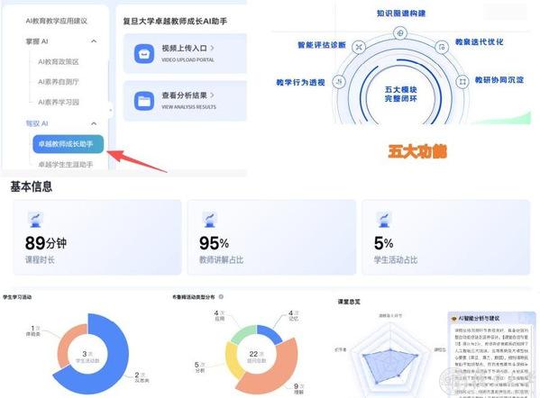 为支撑教师转型,教师教学发展中心构建了一套“标准-证据-改进”闭环机制。将AI能力素养全面嵌入已有的教学研修项目,配合FD-QM智慧课程质量标准和AI专项教改项目,为一线教师教学实践提供场景化的路径指引。同时自主研发“卓越教师成长AI助手”,能够基于课堂实录,对教师的教学节奏、提问设计、逻辑结构等进行精准反馈,提供可解释、可操作的改进建议。