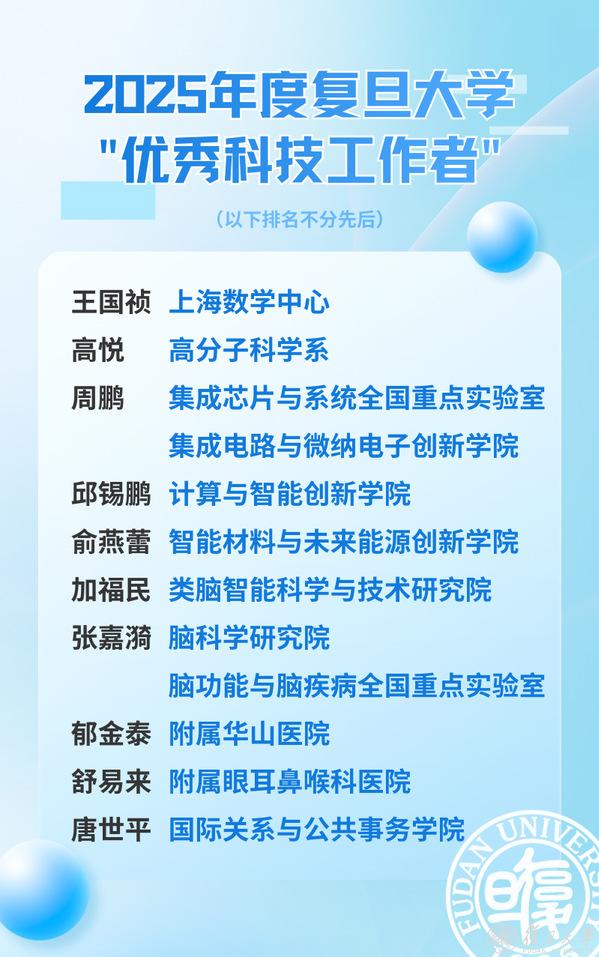 会上,2025年度复旦大学“科技管理工作先进单位”“优秀科技工作者”“科技管理工作先进个人”名单揭晓并颁奖。计算与智能创新学院杨珉、集成芯片与系统全国重点实验室周鹏和脑功能与脑疾病全国重点实验室张嘉漪作为代表发言。