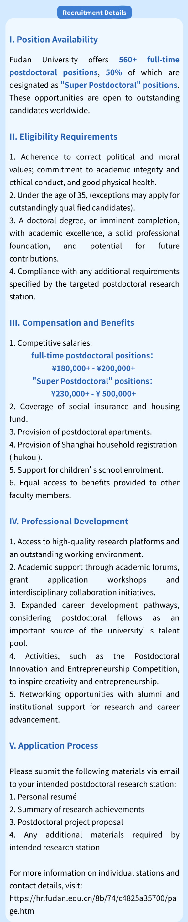 揽才全球!复旦大学2026年全职博士后招聘启动