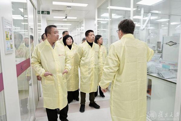 在ATLATL实验室,校领导一行参观了基因与细胞免疫研发平台、综合研发平台等共享平台空间。明亮的实验室之内,整齐存放着医药仪器设备、试管工具,数个超低温保存箱有序地排列于过道。实验室相关负责人简要介绍了共享平台空间的基本情况。