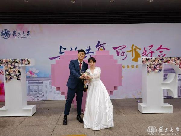 赵先生和妻子李女士参加复旦大学校友集体婚礼