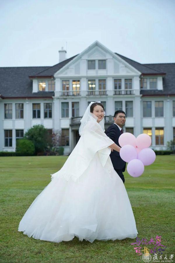 霞霞和丈夫曹先生参加复旦大学校友集体婚礼