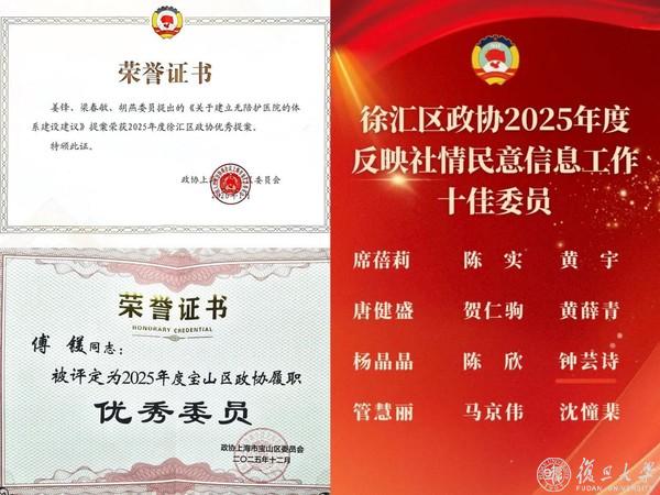 多位政协委员凭借扎实的履职表现斩获荣誉。徐汇区政协常委梁春敏参与的提案《关于建立无陪护医院的体系建设建议》荣获2025年度徐汇区政协优秀提案;虹口区政协委员薛磊获评虹口区政协2025年度优秀委员;徐汇区政协常委钟芸诗获评2025年度徐汇区政协反映社情民意信息工作十佳委员;宝山区政协常委傅镁获评2025年度宝山区政协履职优秀委员。