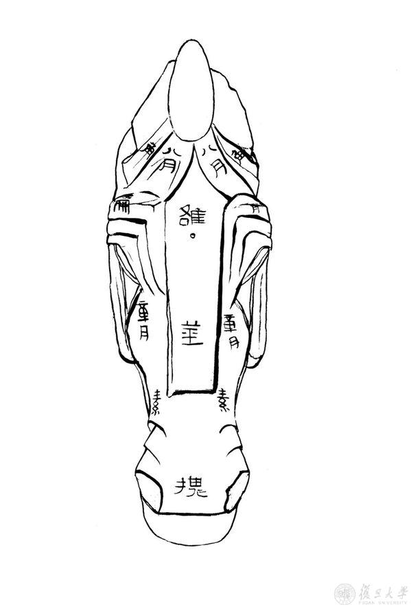 铜马式头部前视图及摹本(董珊制作)