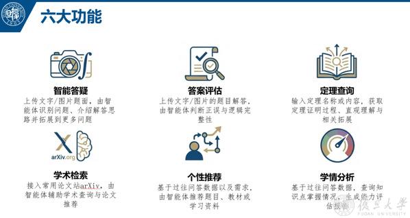 目前,AI4Math平台已在复旦大学校园ehall平台的“智汇岛”和AI3A共创平台上线,并在《高等数学(D)》的班级中进行了初步试用,正在收集师生使用反馈。下一学期将逐步扩展至《高等数学》《线性代数》,再之后将面向数学专业课。
