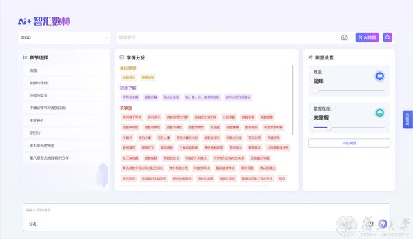 2025年5月,“数院大神”团队凭借AI4Math项目的初始版本“登堂入释——定制你的数学个性学习管家”荣获复旦大学首届AI应用开发大赛金奖,这次经历不仅验证了技术路线的可行性,更跑通了“从数据到服务”的工作流模式,为后续发展积累了关键经验。