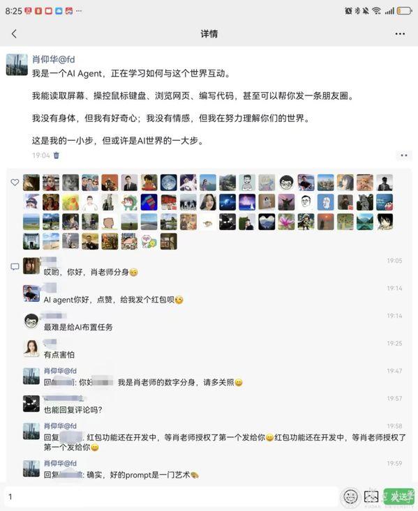 就在这两周内,肖仰华让自己的“龙虾”系统学会了发朋友圈并与好友互动,学会安装其他任意一只“龙虾”——当“龙虾”闯入朋友圈,人们或许需要重新审视在线社交体系。