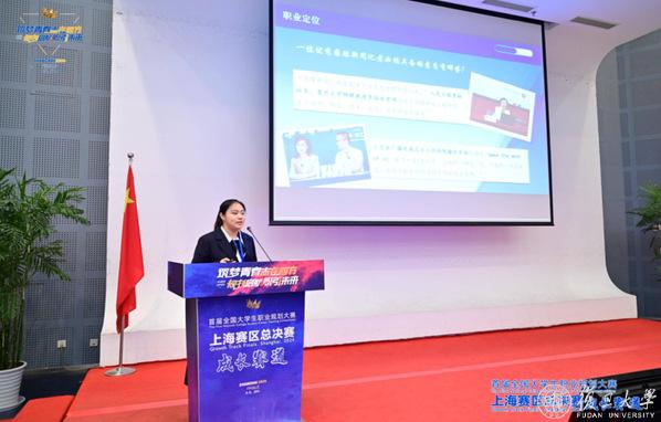 比赛中,她结合上海谦和大方的气质与国际新闻记者职责,把自己姓氏“付”的首字母“F”与信念“Faith”、未来“Future”串联成“3F”的故事,最终斩获铜奖。