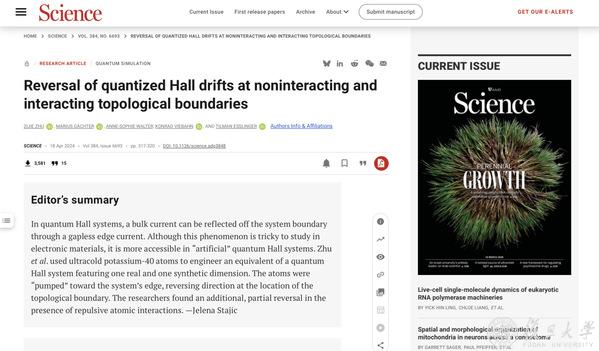 2024年,还在博士阶段的他以第一作者身份在Science上发表论文,研究发现了非相互作用和相互作用拓扑边界处量子化霍尔漂移的反转。这项工作的源头,却是一个“意外”。
