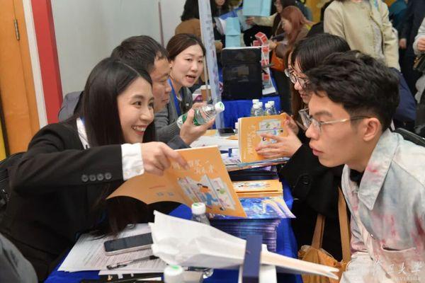 近年来,复旦“新文科”建设成效显著。学科交叉深度融合,推出大量“+AI”双学位及本研融通项目,交叉学科招生占比达20%。在展位现场的小鹏集团校招负责人表示,出于品牌传播与出海战略的考量,对新闻传播、法律、管理等复合型人才不限量提供岗位。
