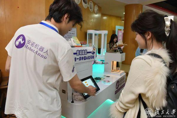 承办方深圳宝安区人社局专门为复旦学子打造了“AI 创万物” 科创体验区,集中展示了 AI 眼镜、智能硬件、影石 360、韶音耳机等前沿产品,安诺咖啡机器人等生活化科技应用吸引大批师生驻足体验。