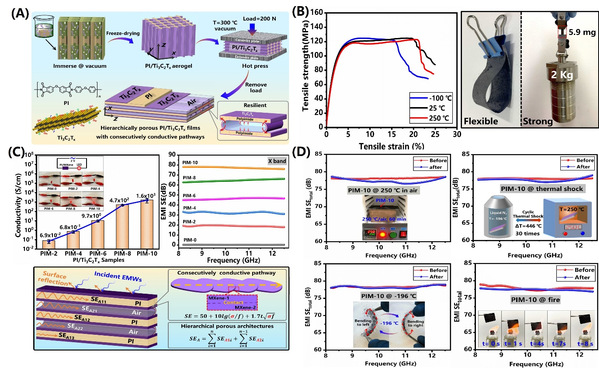 Hierarchically Porous Polyimide/Ti3C2Tx Film with Stable Electromagnet...