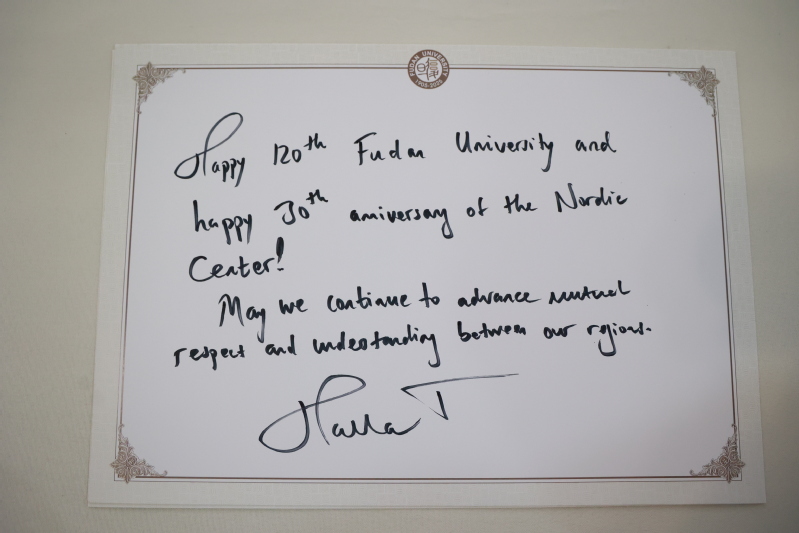 Tómasdóttir expressed her gratitude for the warm reception and extended congratulations on the 30th anniversary of the Nordic Centre, a joint-venture between Fudan University, the Nordic Institute of Asian Studies and over 20 universities from Nordic countries. She highlighted that the Nordic countries collectively form the world's tenth-largest economy, representing a key global economic partner. She took pride in the Nordic Centre’s presence in China, stressing that curiosity, understanding, and openness in human interaction can create something truly special.