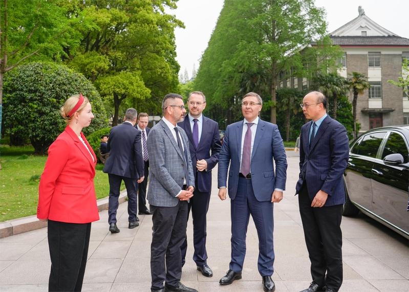 On April 17, a delegation led by Valery Falkov, Minister of Science and Higher Education of the Russian Federation, visited Fudan University. JIN Li, President of Fudan University, met with Falkov and his delegation to exchange views on China-Russia educational and technological cooperation. The meeting was hosted by Vice President of Fudan University CHEN Zhimin.
